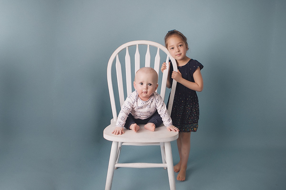 sitting baby photography blue chair